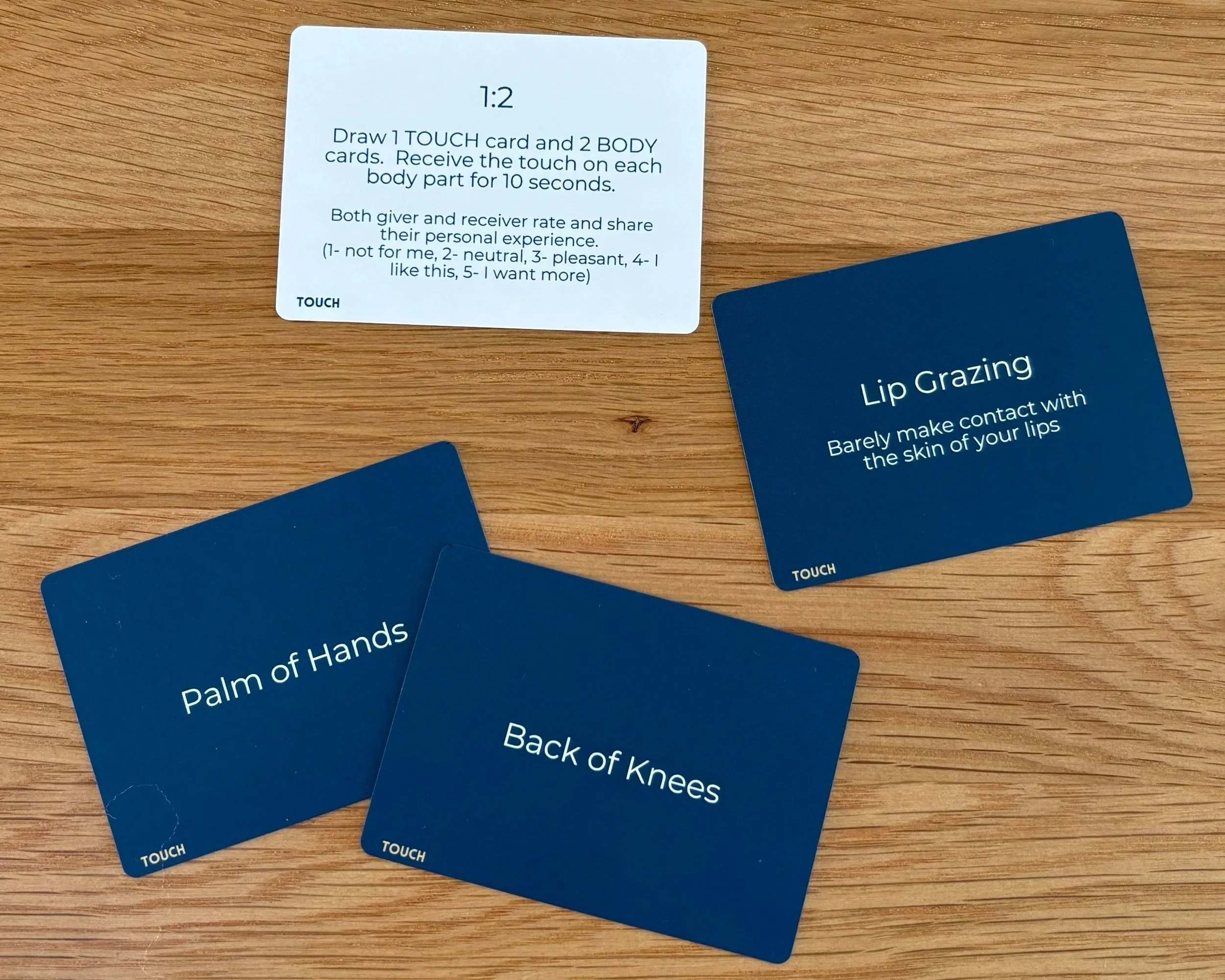 “we’re always looking for new ways to connect beyond the routine. touch gave us permission to explore without overthinking it. some cards were soft and sensual, others hilarious, and a few pushed our comfort zones in the best possible way. it turned an ordinary night into something memorable and surprisingly deep.”